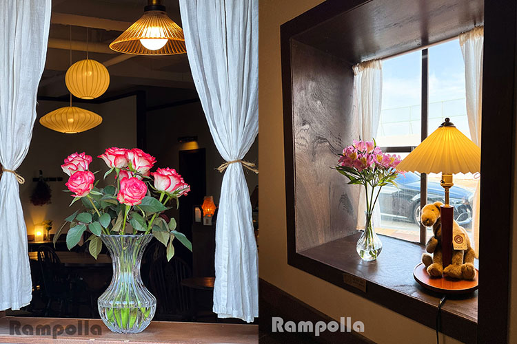 가게 내부 공간이 넓었고 테이블 간 간격이 넓어서 더 좋았다. 대신 내부 인테리어가 짙은색의 나무로 되어 낮에도 아늑하고 묵직한 느낌이었다. 사장님께서 생화로 카페를 꾸며 더 감성적이 공간, 백금당이 마음에 들었다. 주문한 메뉴를 기다리며 카페 곳곳에 아기자기 한 공간들을 구경하고 사진에 담았다.